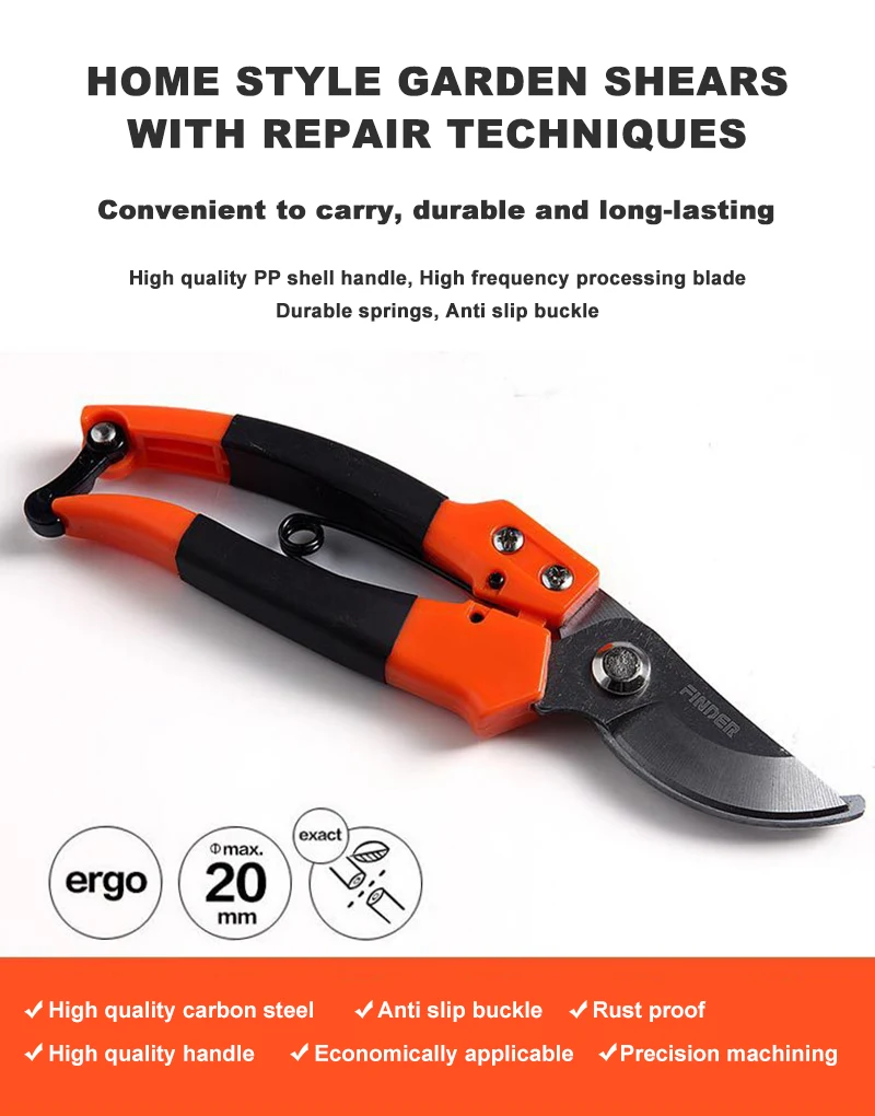 Garden tools pruning scissors (also known as pruning shears or gardening shears) are one of the core tools for gardeners and gardeners. Their exquisite blade structure and mechanical design can not only achieve precise shaping and pruning of plants, shrubs and trees, but also effectively reduce mechanical damage to branch tissues during pruning, thus ensuring the healthy growth of plants while shaping the landscape.